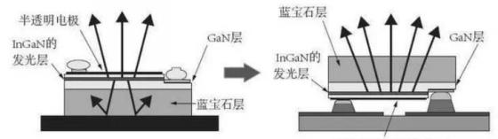 相对于正装COB封装,倒装COB结构更加简单 LED耐更高电流,制造工艺简化 无金线 散热更佳,稳定性高,且RGB混光效果好。