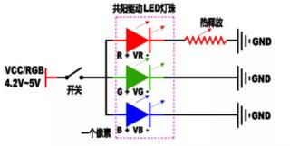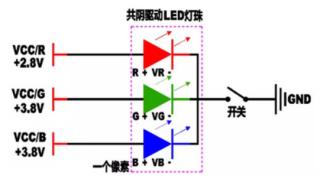 共阴技术可以将LED灯珠的工作电压由4.2-5V降低到2.8-3.3V,而显示亮度和显示效果却不受影响,最直接的表现就是功耗降低了25%以上,其次就是由于功耗的降低,从而使整屏的屏幕温度降得更低,由于发光二极管的稳定性和寿命与温度成反比,因此使得整屏LED具有了更高的可靠性和更长的寿命,最后就是共阴技术由于取消了多余的电阻,使得集成度进一步提升,更是减少了PCB的元器件数量,稳定性进一步得到提升。