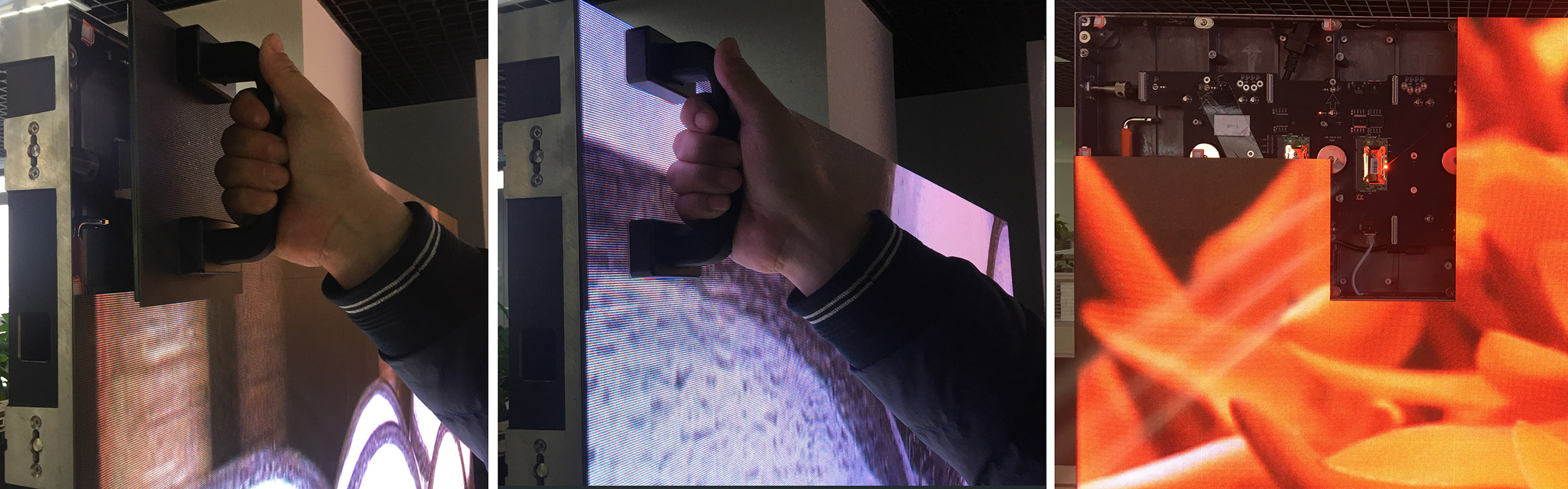 无线安装,硬链接,箱体拼接采用内部硬链接,拼接大屏零连接线,用户级安装,模块底壳设计充分保护模块。
